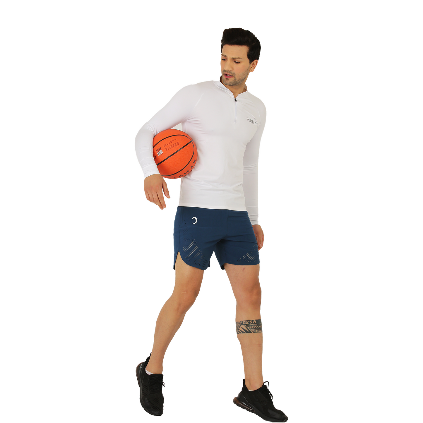 Men's Long Sleeve 1/4 Zipper Polyester Gym workout T-Shirt White