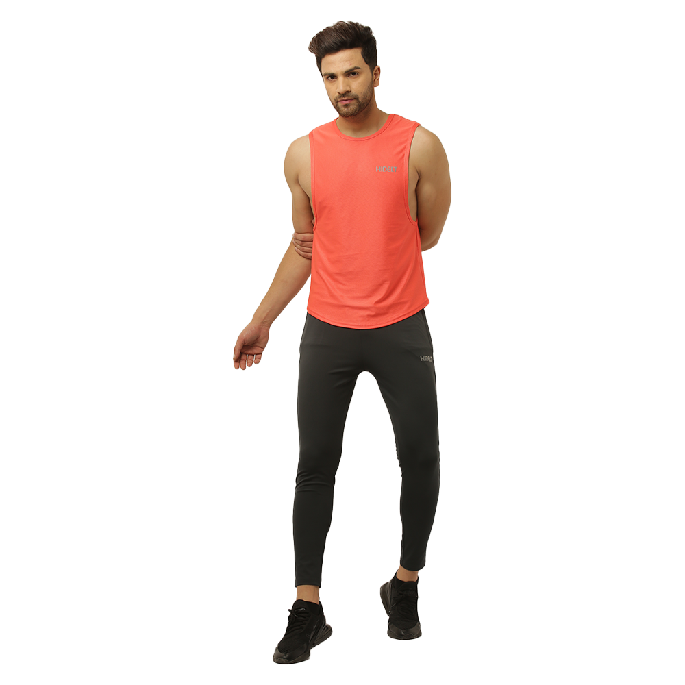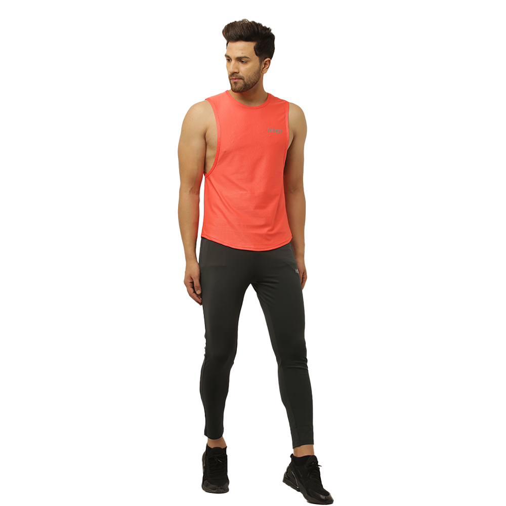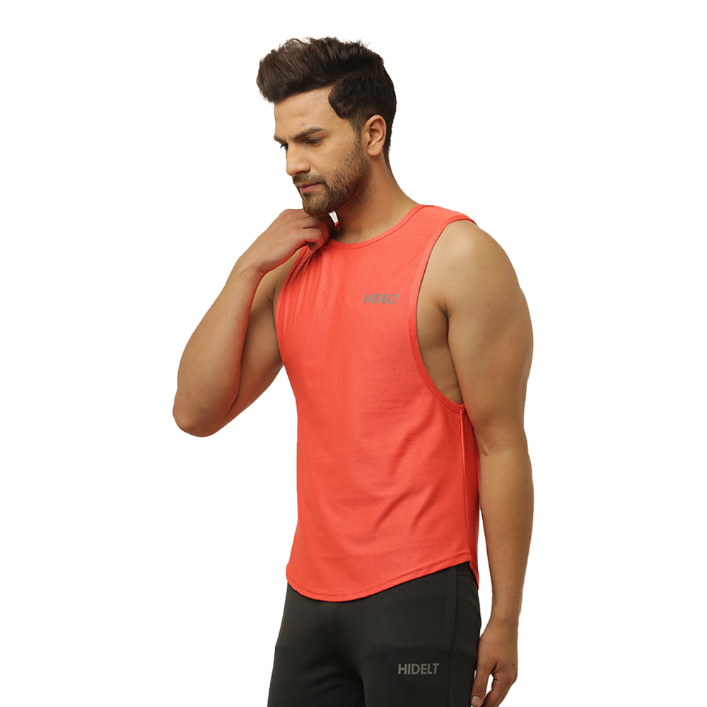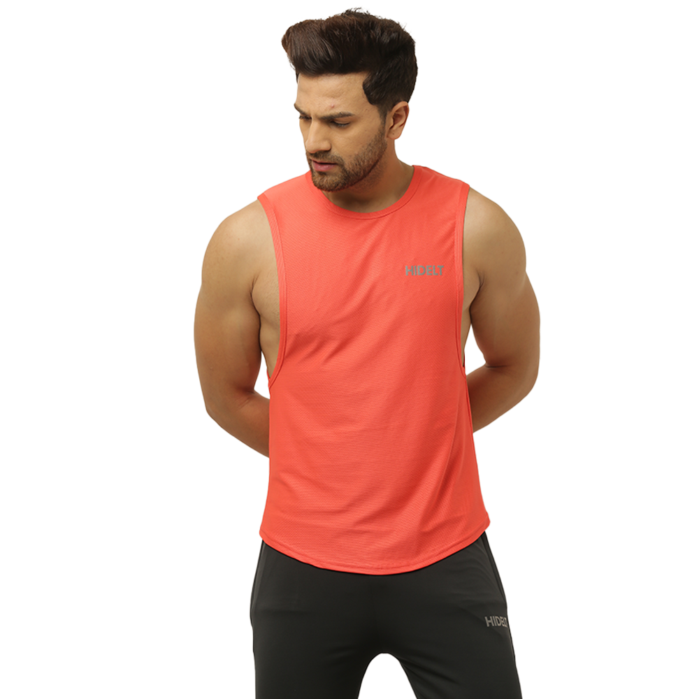 Men's gym Wear Drop Arm Tank - Carrot red color