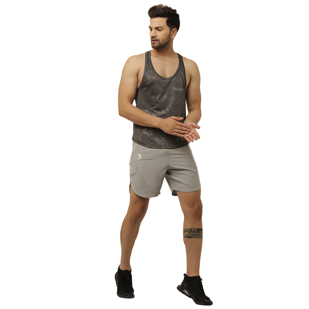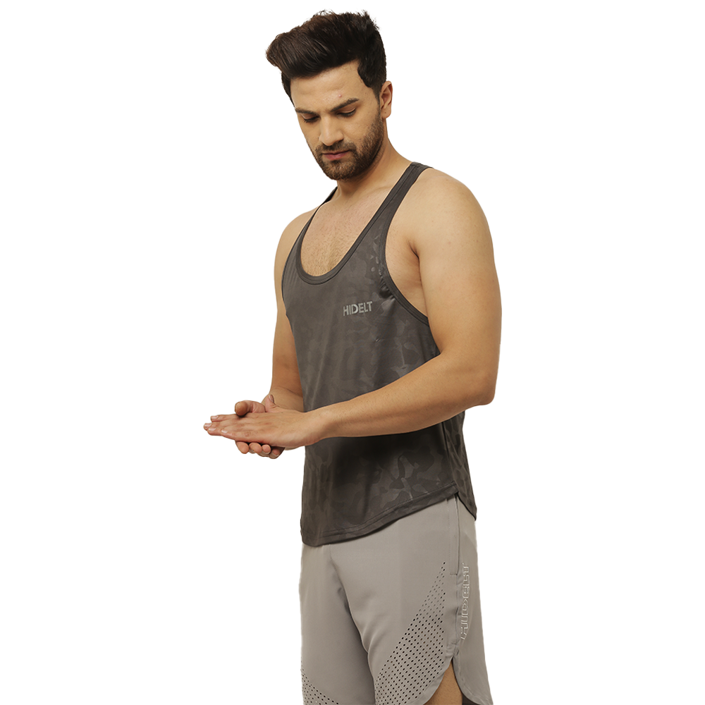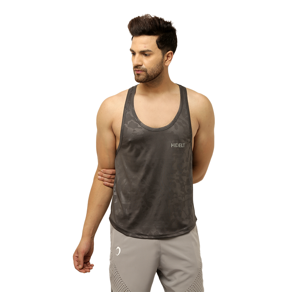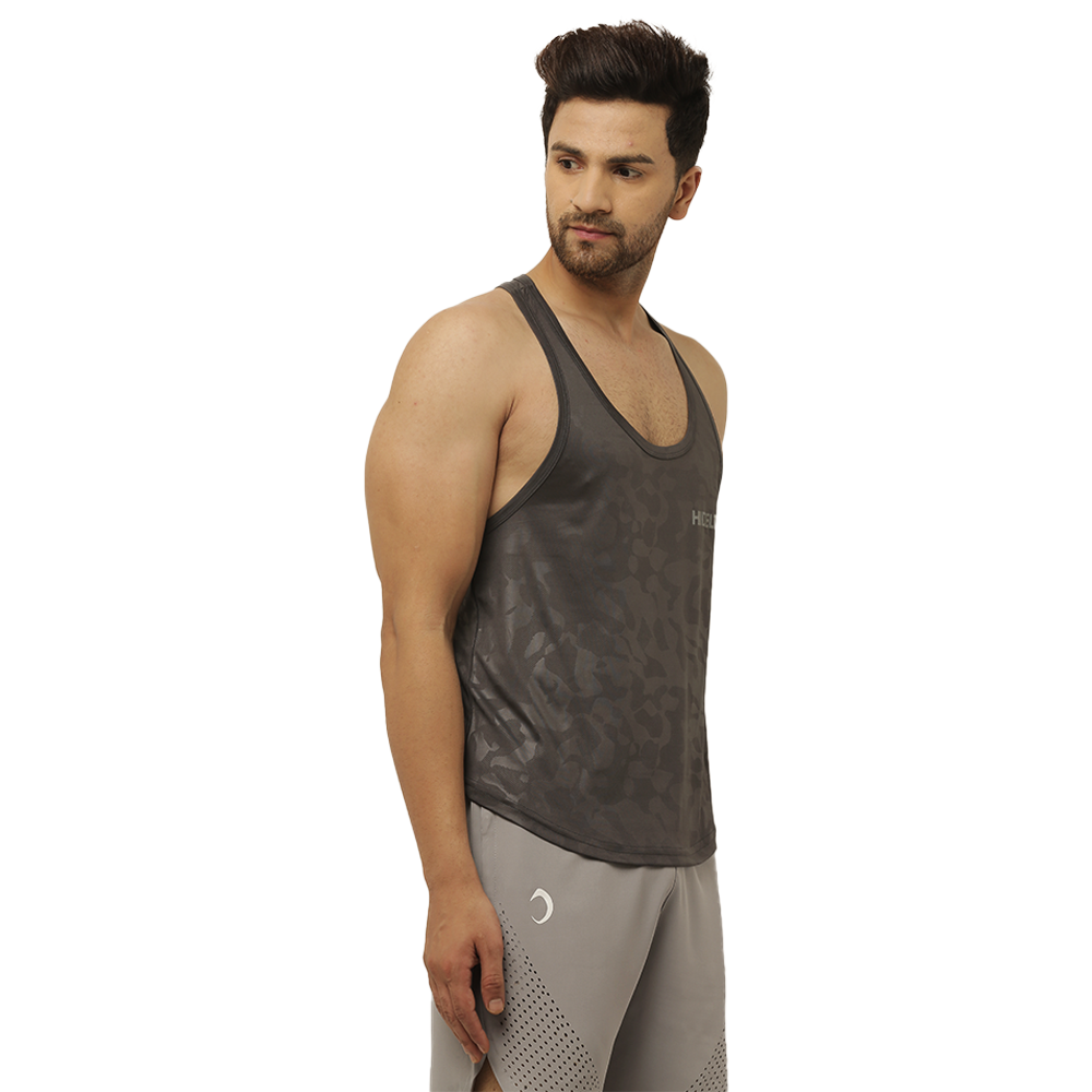 Men's Gym wear Dark Grey Emboss Print Stringer